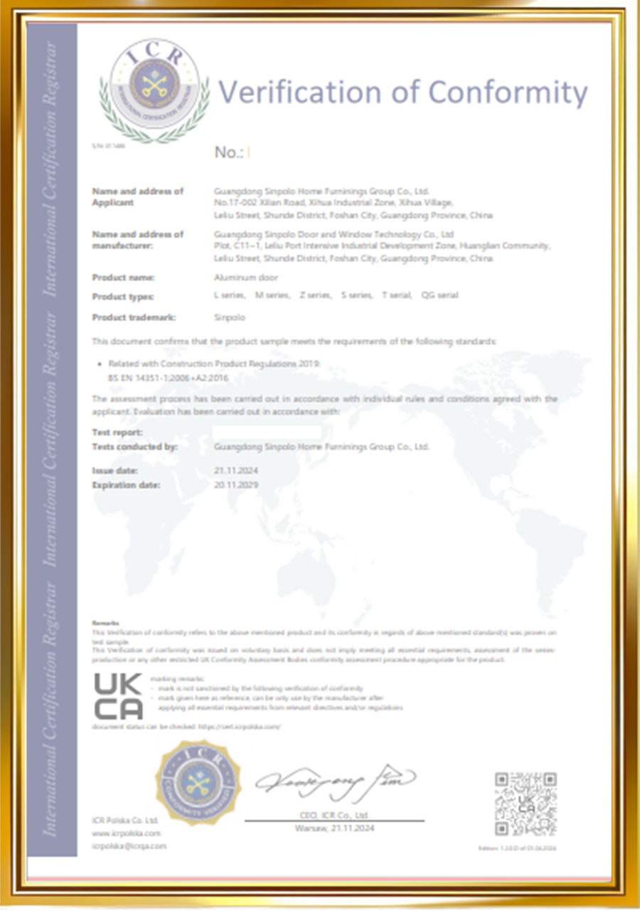 These certifications ensure that Sinpolo’s doors and windows meet critical structural, fire safety, and energy efficiency requirements, aligning with North America’s stringent building codes.Expanding Global Reach with Key CertificationsWith the addition of CSA, Sinpolo now holds a robust portfolio of international certifications, including CE, SAI, UKCA, and ISO, underscoring its dedication to quality, sustainability, and cross-border compliance. These credentials enable seamless market access to Europe, the UK, North America, and beyond, empowering architects, contractors, and developers to specify Sinpolo products with confidence.