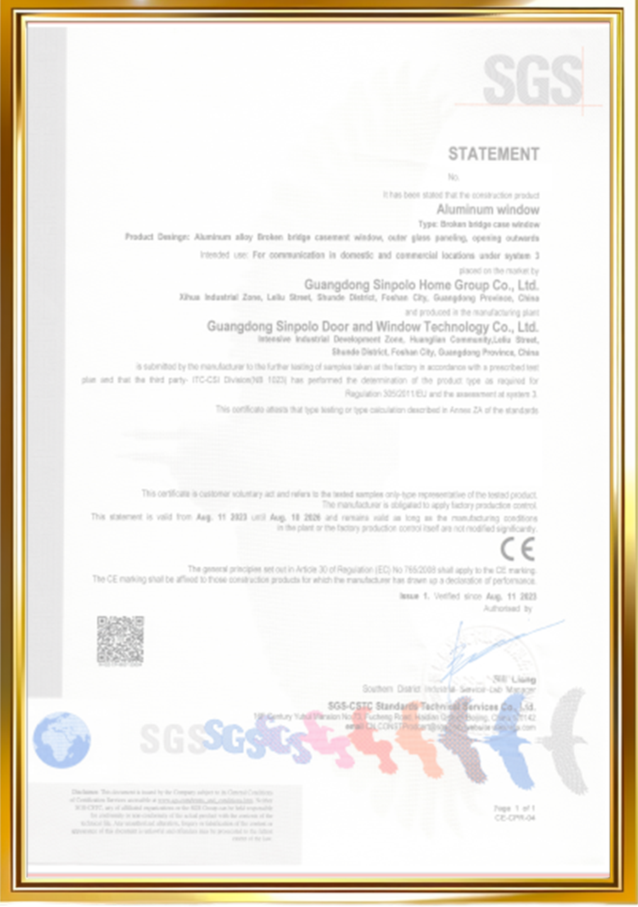 [Foshan, 8.May,2025] — Sinpolo Doors & Windows, a leading innovator in high-performance architectural solutions, proudly announces its latest achievement: CSA Certification for its premium product lines. This milestone reinforces the company’s commitment to global quality standards and positions Sinpolo as a trusted partner in the international building materials sector.